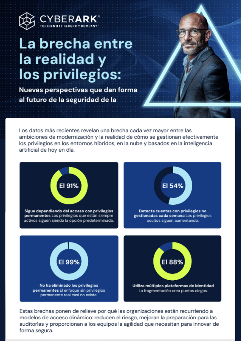Los datos más recientes revelan una brecha cada vez mayor entre la realidad y los privilegios: las organizaciones compiten por innovar en la nube y la IA, pero los privilegios existentes, la deriva de privilegios y los controles fragmentados siguen ampliando la superficie de ataque. Esta infografía ofrece a los equipos de seguridad e infraestructura una visión clara de dónde están aumentando los riesgos y las perspectivas prácticas necesarias para modernizar los controles de privilegios, eliminar accesos innecesarios y construir una base más solida de la seguridad de la identidad.